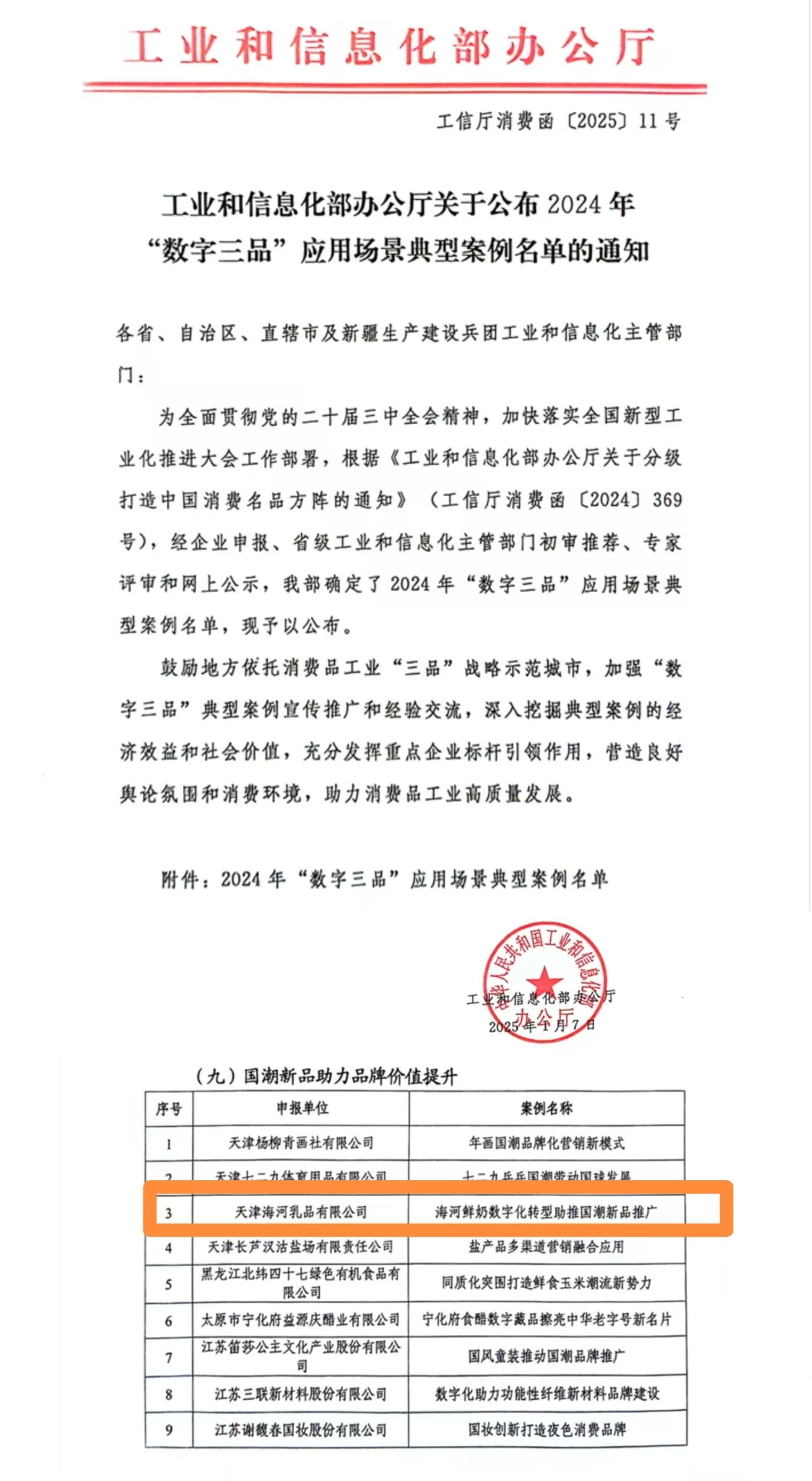 海河乳品公司入選全國“數(shù)字三品” 應(yīng)用場景典型案例